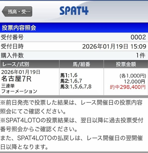 よくいって10万当たれば万々歳だったけど何十倍もの期待を超えてきた! いやはや、これは税金払わないと追われそうな額だけに、焦りを…(笑) 税金払う分また的中すりゃいい話だけか!
