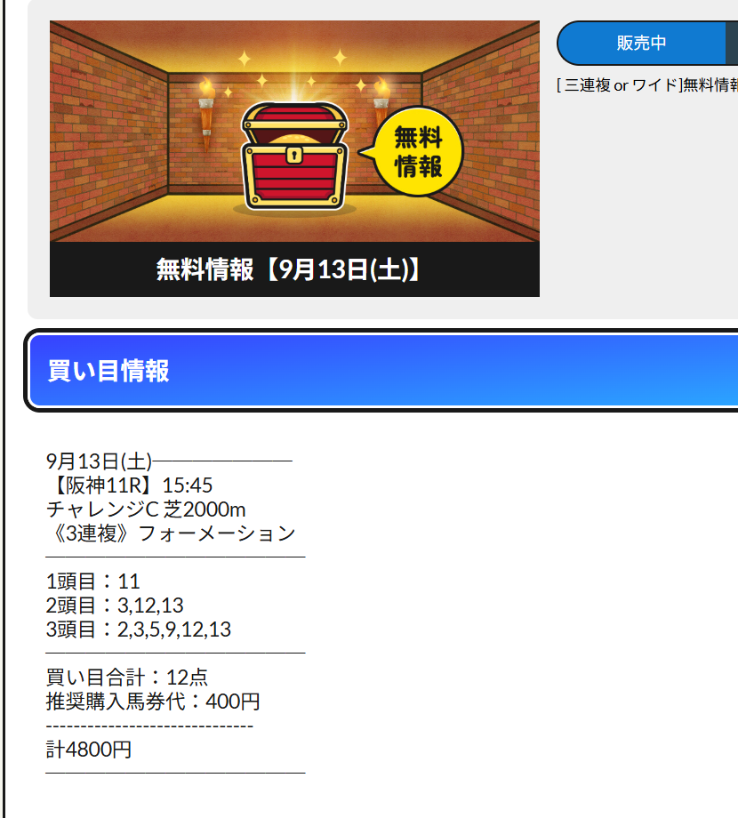 毎週欠かさず参加している、リホラボの直前情報。 今回は140,700円の払戻しでした! 馬券代は5,000円だったので135,700円のプラスになりました!
